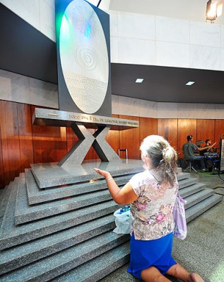 At the entrance of the Alziro Zarur Memorial, there is a mystic work of art by the German plastic artist Ula Haensell (1938-1992). In front of this panel in crystal, anyone can calm their mind and Soul, feel their heartbeat, and renew their energy.