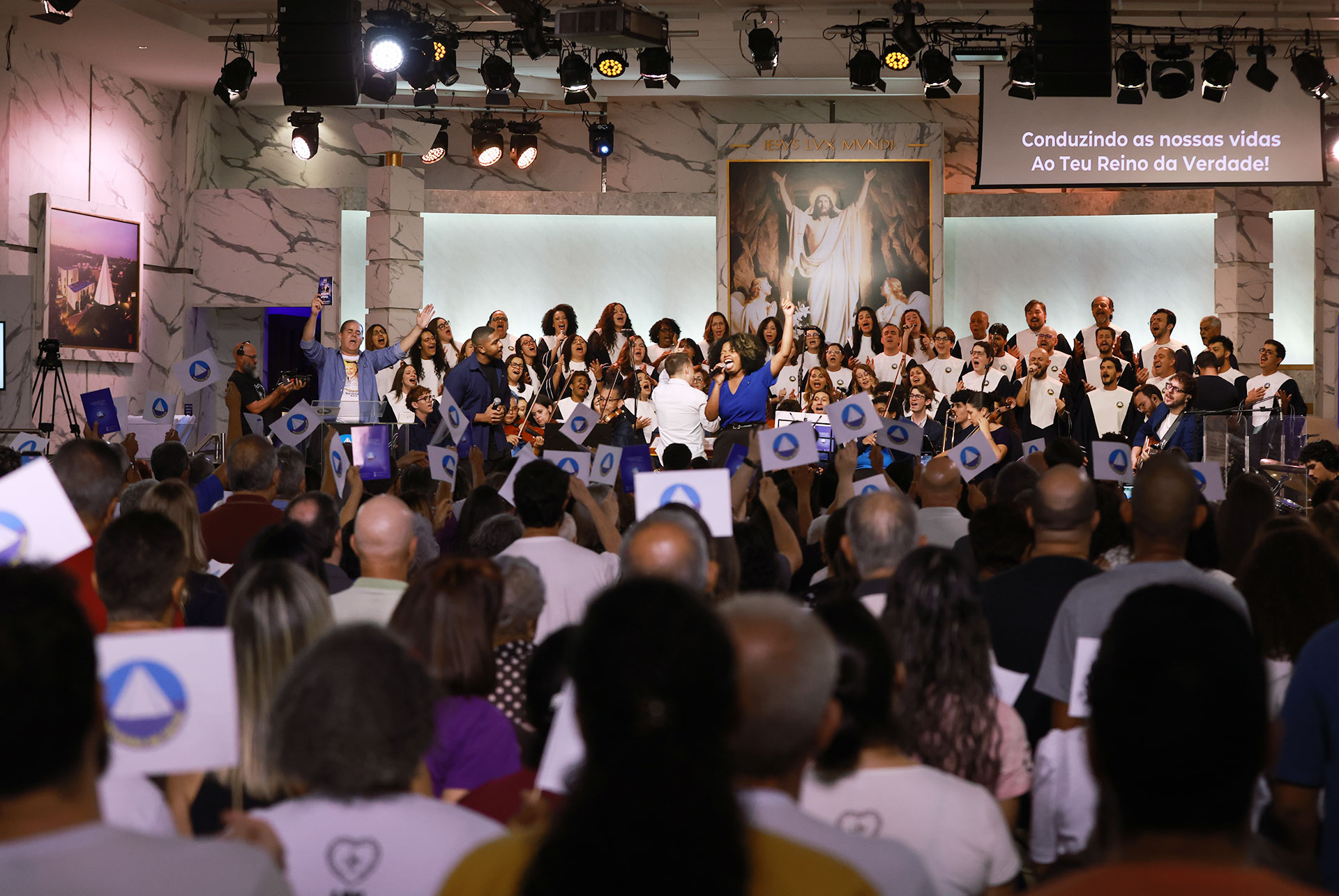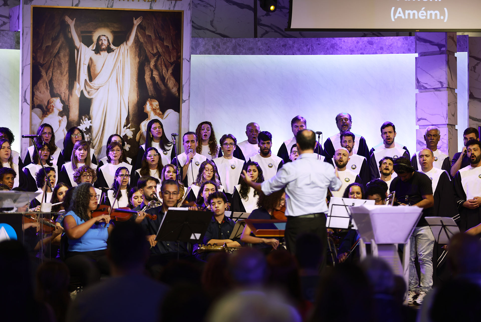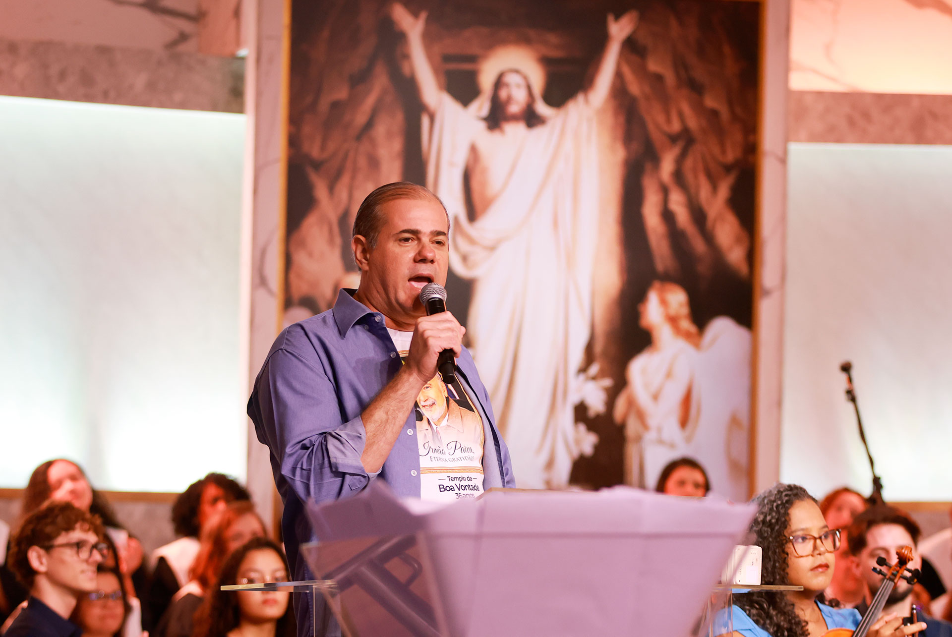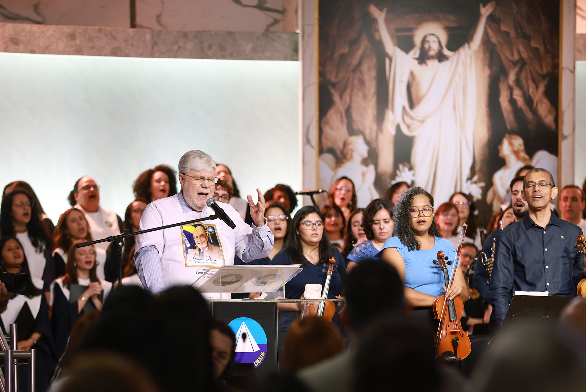 Na Apresentação Musical Legionário “Jesus Vive!”, interpretada pelo Coral Ecumênico Boa Vontade e Orquestra Filarmônica Jovem Boa Vontade, o público acompanhou emocionantes canções intercaladas com versículos bíblicos e trechos de pregações históricas do Irmão Paiva que exaltam a ressurreição de Jesus e Sua vitória sobre a morte, elevando o ambiente a um clima de intensa renovação espiritual.