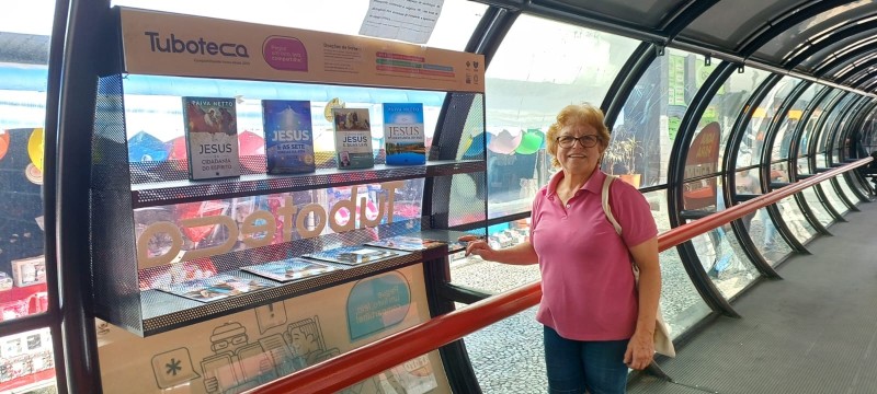 São oportunidades lindas que temos para divulgar essa mensagem maravilhosa da Religião Divina, Mensagem Ecumênica, do Amor que nos trouxe Jesus, e, sobretudo, sobre a Sua Volta Gloriosa ao nosso planeta. Ao todo, são cinco Tubotecas no centro de Curitiba onde eu levo os livros. Ainda na Biblioteca Municipal e na Biblioteca do Terminal Central de ônibus urbanos, ambas aqui no centro de São José dos Pinhais, onde moro. É uma alegria poder realizar esse trabalho. Sempre que meu filho Daniel Filipe pode, ele me acompanha e somos muito agradecidos a Deus pela belíssima oportunidade a nós concedida. Agradecemos também ao Irmão Paiva pela mensagem extraordinária que ele compartilha com tantas pessoas por meio de seus escritos e que circulam nos ônibus urbanos, tanto de Curitiba quanto aqui de São José dos Pinhais. Que essas mensagens maravilhosas cheguem realmente ao máximo de pessoas. Então, muitíssimo obrigada, eternamente grata pela oportunidade! E vamos sempre em frente, porque Deus Está Presente! e Viva Jesus em nossos corações para sempre!